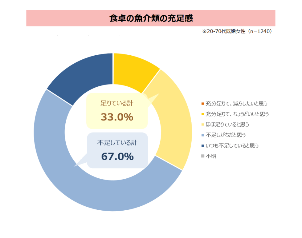 魚介類に不足感を抱く人は7割弱、肉類を「充分足りて、減らしたい」と考える人は1割