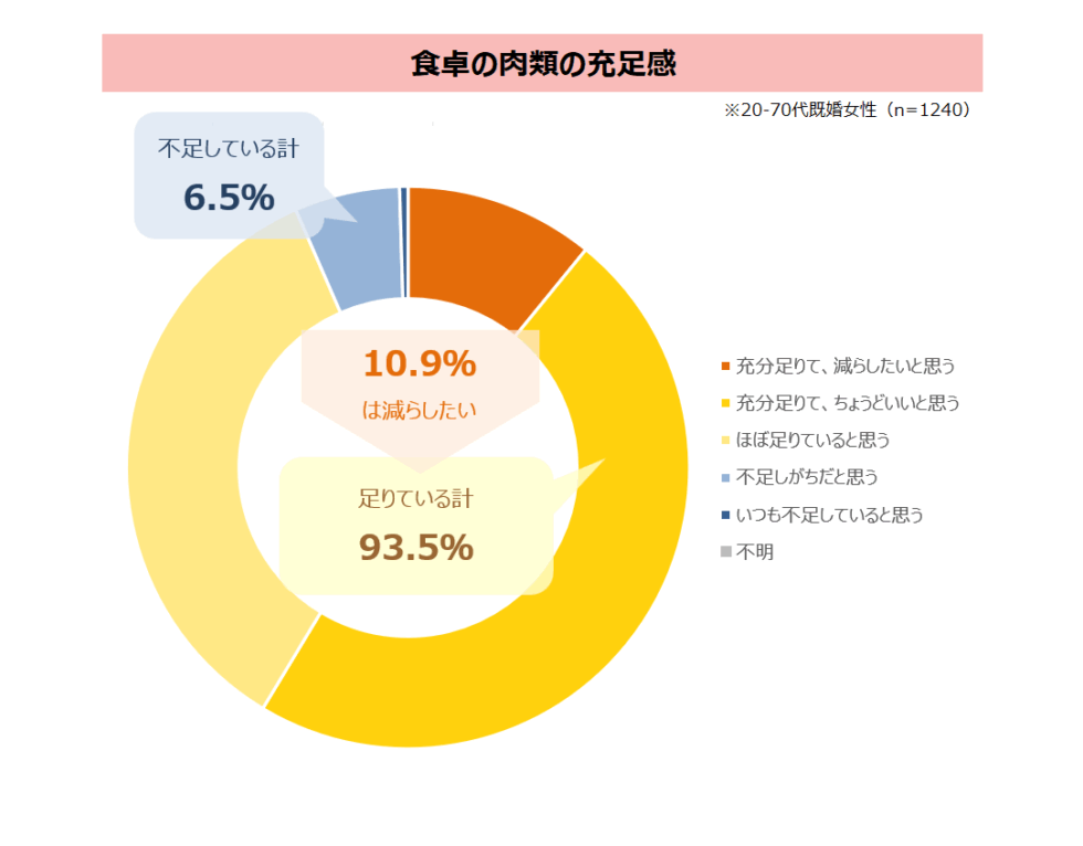 肉類を「充分足りて、減らしたい」と考える人は1割