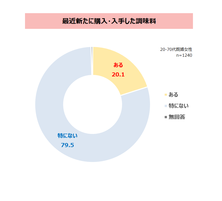 ◆ 20~70代の女性の2割が、最近新たに購入した調味料・スパイスがある